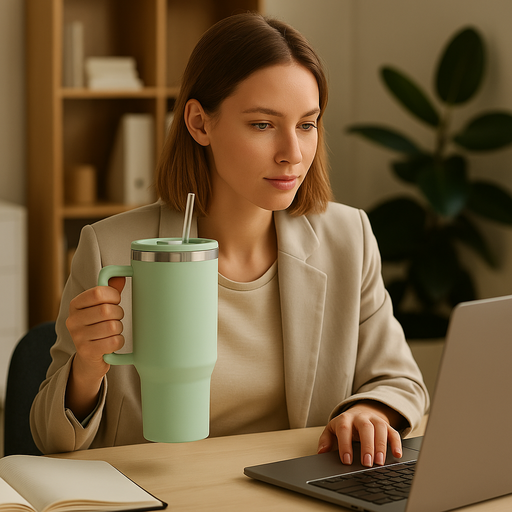 Mantén tu bebida perfecta por horas —ya sea un café caliente o una bebida helada— con el ESKI ThermoCup™, el vaso térmico que combina diseño moderno, ergonomía y resistencia en cada sorbo.